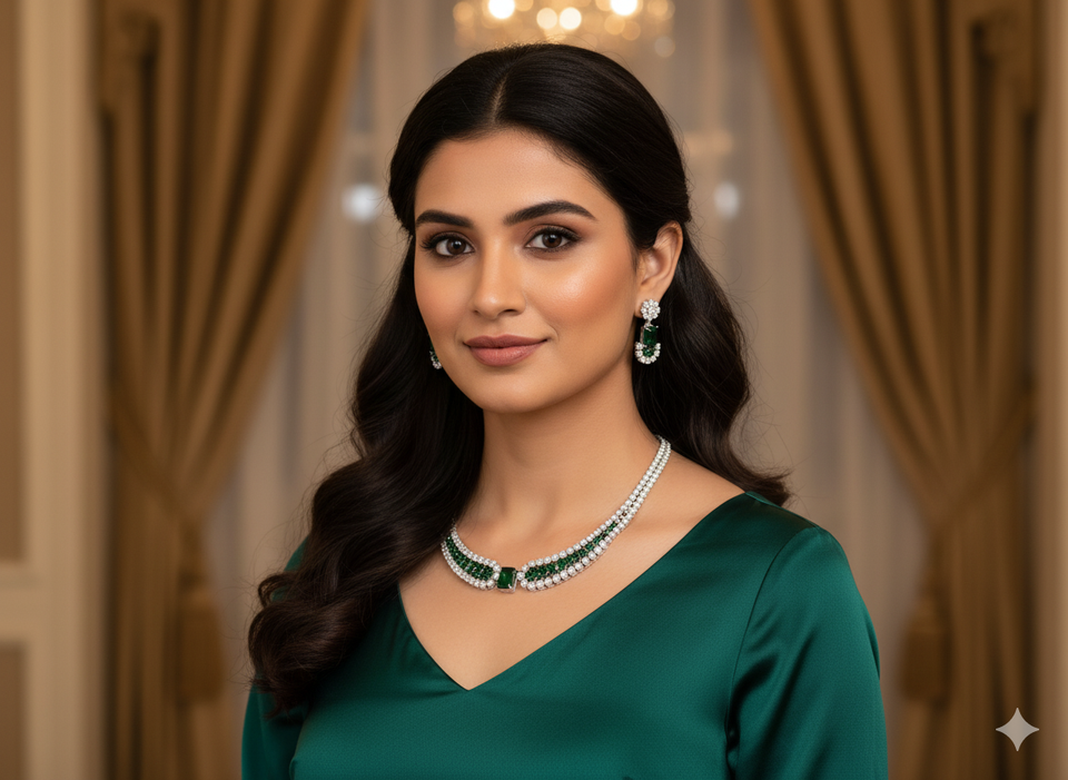 ชุดสร้อยคอ AD ดีไซน์หรูหราสำหรับผู้หญิง เครื่องประดับอินเดียแบบดั้งเดิม ชุดสร้อยคอเจ้าสาวสำหรับงานปาร์ตี้ งานแต่งงาน และของขวัญ