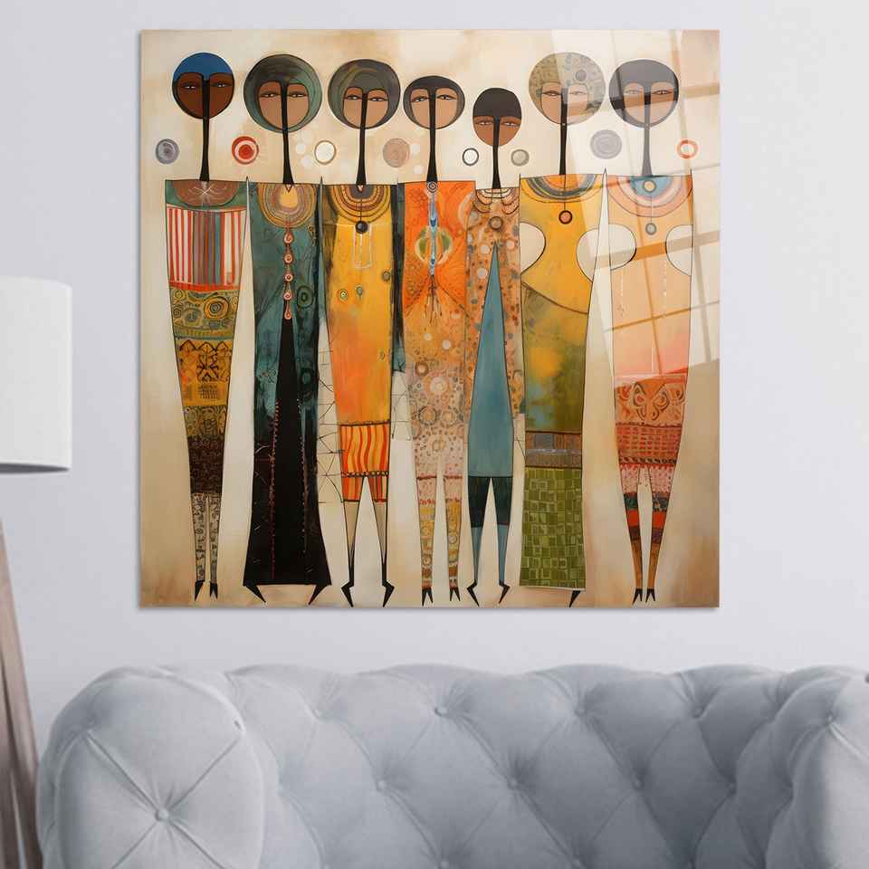 ภาพพิมพ์บนผ้าใบลายผู้หญิงแอฟริกันแบบนามธรรมที่งดงาม: ศิลปะติดผนังแสดงความรักใคร่ในพี่น้องที่สดใส, ศิลปะบนกระจกนิรภัย