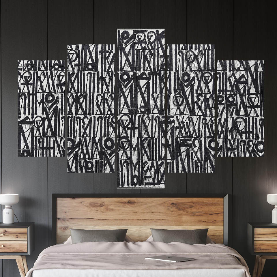 ภาพพิมพ์บนผ้าใบลายกราฟฟิตีแบบนามธรรมที่หรูหรา - ของตกแต่งแนวสตรีทอาร์ตสมัยใหม่, ชุด 5 ชิ้น: ภาพพิมพ์แบบห่อหุ้ม