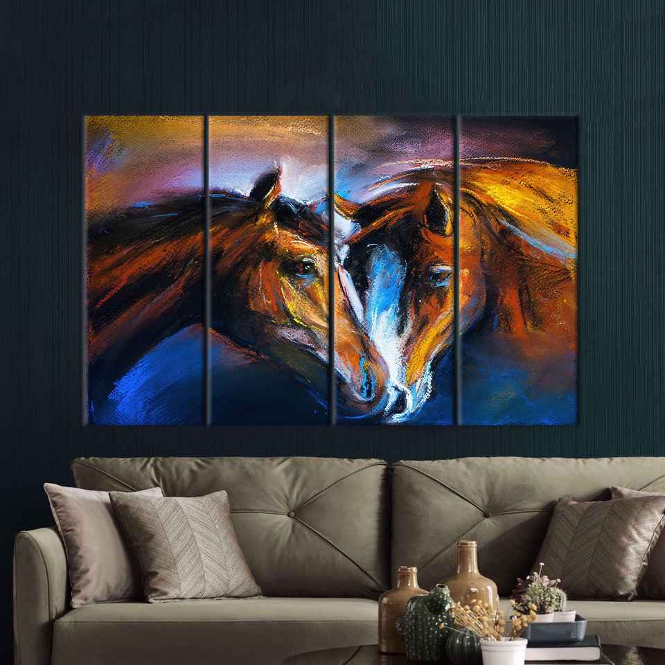 ภาพพิมพ์บนผ้าใบ 3 มิติลายม้าแบบนามธรรมสุดหรู - ของตกแต่งบ้านและของขวัญ,4P: ห่อหุ้มอย่างดี