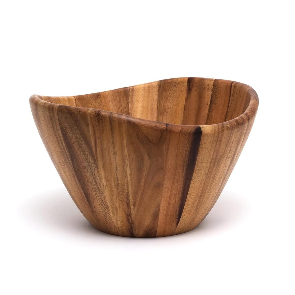 ชามเสิร์ฟลายคลื่นอะคาเซียสุดหรู ชามสลัดและผลไม้ทำมือจากไม้ สำหรับรับประทานอาหารและตกแต่งบ้าน