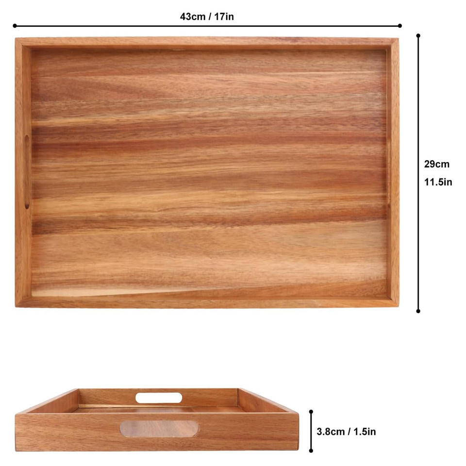 Product Name:Acacia Wood Serving Tray with Handle l Set of 2