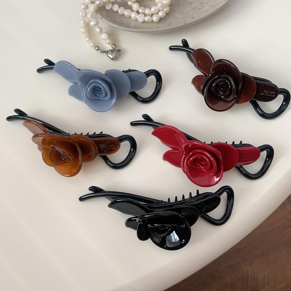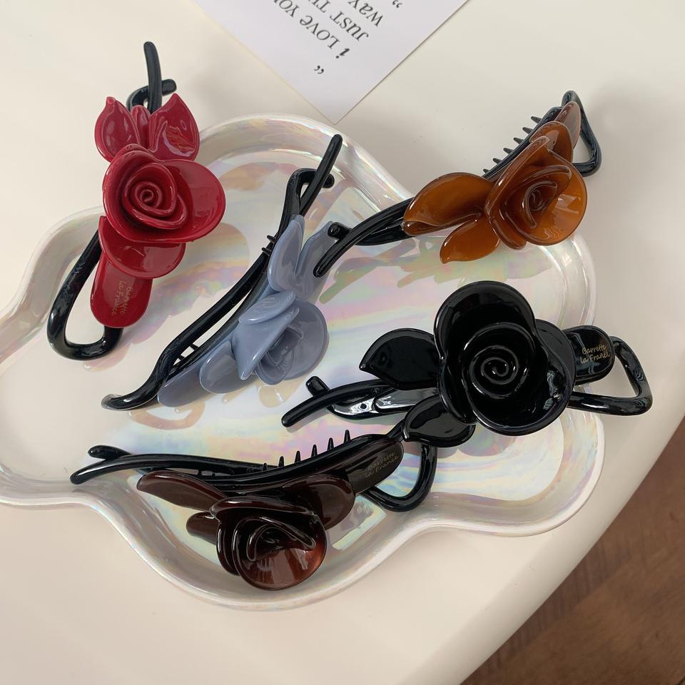 กิ๊บติดผมอะซิเตทแบบหรูหราพร้อมดีไซน์ดอกไม้สีทึบสำหรับผู้หญิง