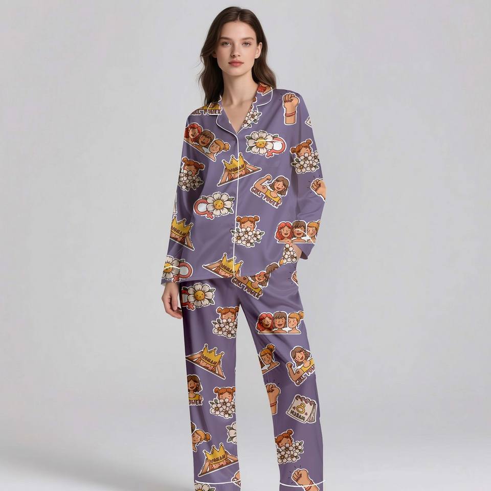 คำอธิบาย:ชุดนอนผ้าซาตินสำหรับผู้หญิง