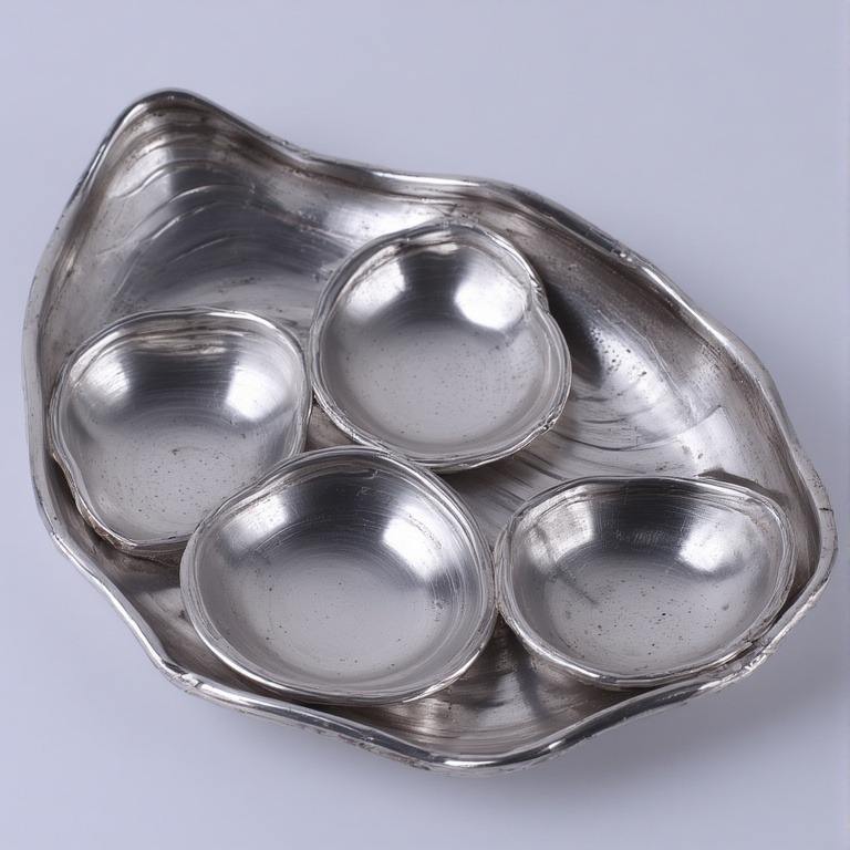 เซิร์ฟเวอร์ผลไม้แห้งทำจากอลูมิเนียมหรูหราโดยมีชามใบที่เชื่อมต่อกันสามใบตกแต่งด้วยสีทองออกแบบมาสำหรับตกแต่งภายในรับประทานอาหาร