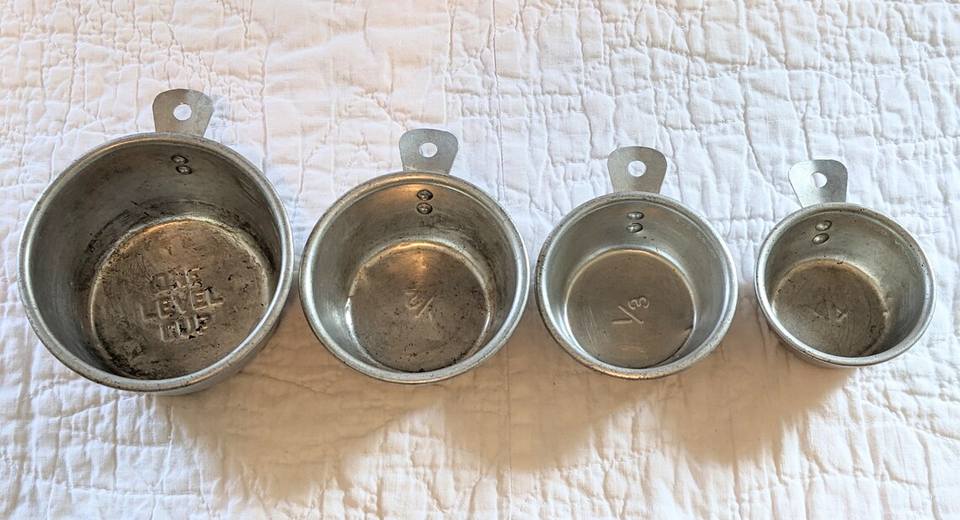 1ถ้วย, 1/2ถ้วย, 1/3ถ้วย, และ1/4ถ้วย