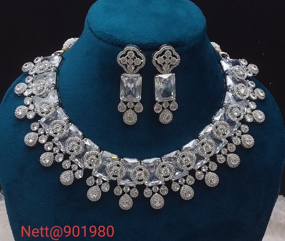 ชุดเครื่องประดับเพชรอเมริกันที่สง่างามสำหรับผู้หญิง | สร้อยคอและต่างหูที่ทันสมัย | เหมาะสำหรับเทศกาลและโอกาสแบบดั้งเดิม
