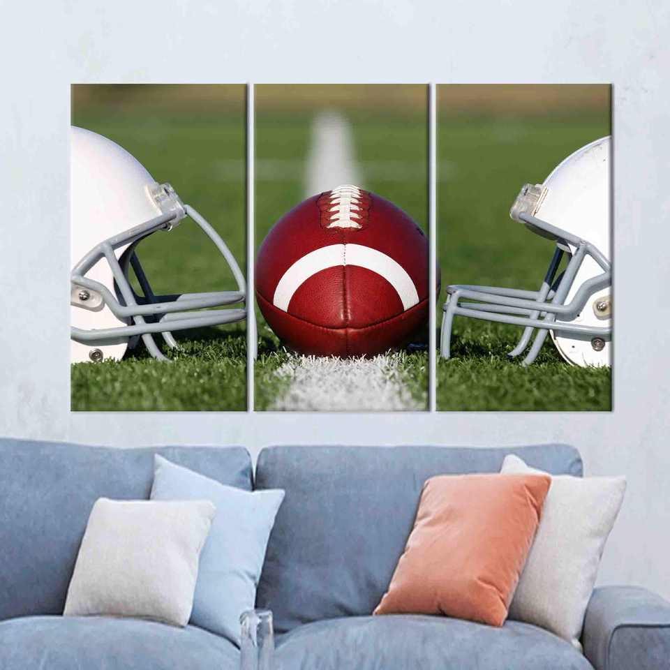 งานศิลปะบนผ้าใบพิมพ์ลายหมวกกันน็อคอเมริกันฟุตบอลสุดหรู - ของขวัญทำมือ,3P:ห่อแบบแกลเลอรี่