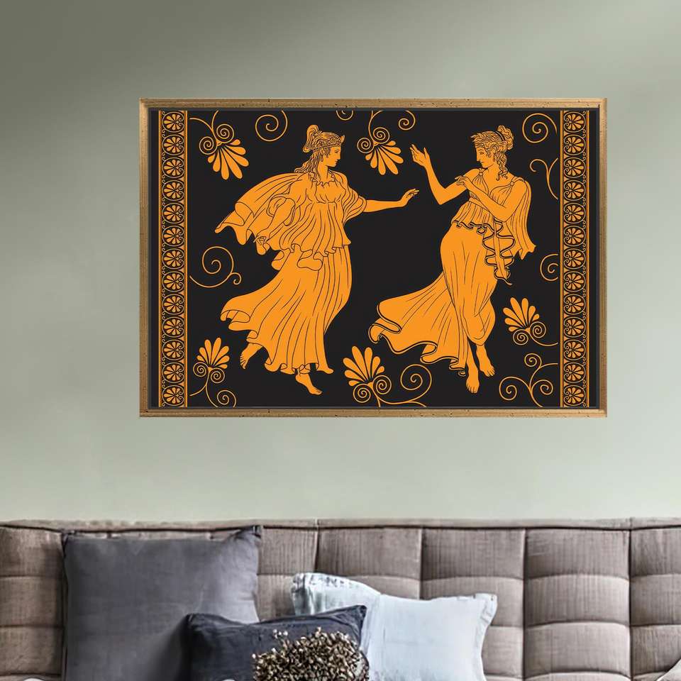 ภาพพิมพ์ศิลปะบนผืนผ้าใบลายดอกไม้ รูปเด็กหญิงกรีกโบราณที่สง่างามในชุดทูนิกส์ 1P: กรอบสีทอง