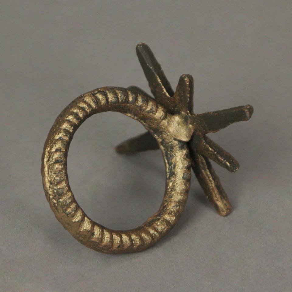 แหวนรองผ้าเช็ดปากลายดาวทองโบราณสุดหรู ของตกแต่งโต๊ะเหล็กหล่อสไตล์เรโทร ที่วางผ้าเช็ดปากลายดาวเหนือสีทองวินเทจสุดหรู