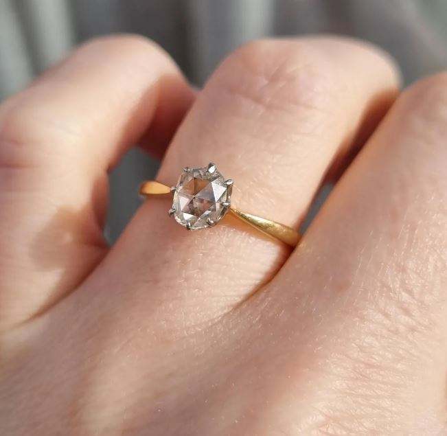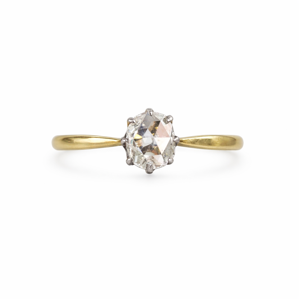 Product name:14K Gold Rose Cut Taper Shank Solitaire Ring