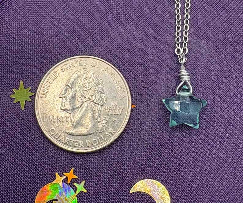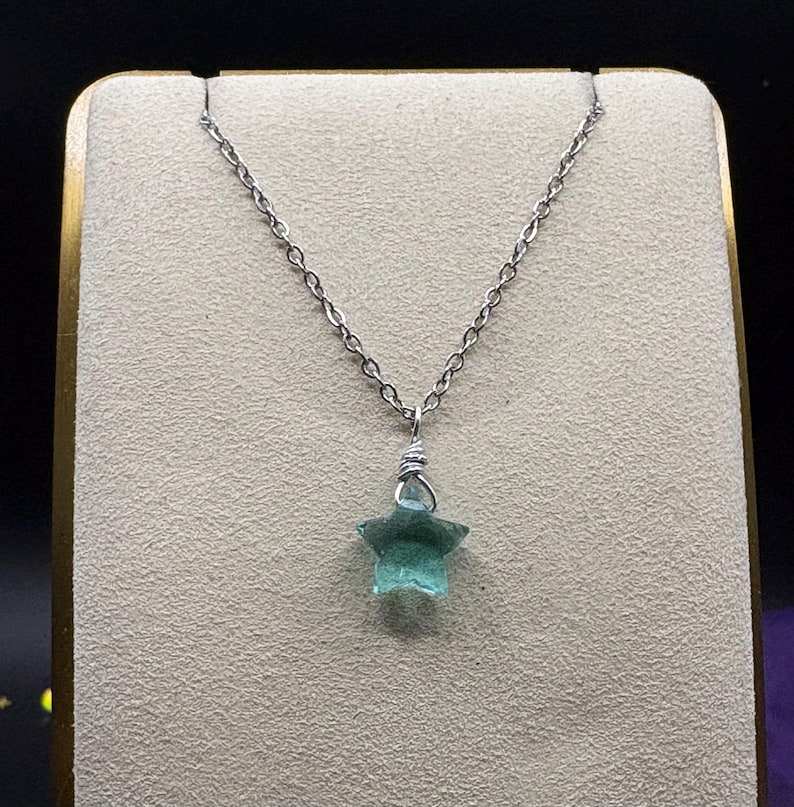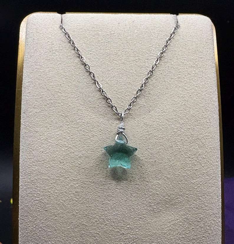 สร้อยคอจี้รูปดาวสีฟ้าน้ำทะเลที่สง่างามทำด้วยมือเครื่องประดับอัญมณีเหลี่ยมเพชรพลอยของขวัญที่เรียบง่ายสำหรับผู้หญิง