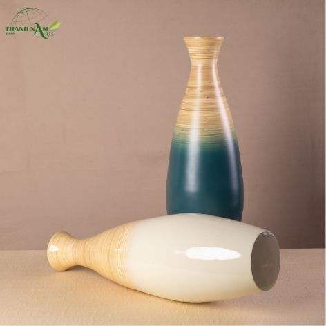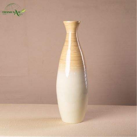 แจกันทรงโค้งสไตล์อาร์ตเดโค ทำจากไม้ไผ่เคลือบเงาสองสี เป็นมิตรกับสิ่งแวดล้อมและทนทาน