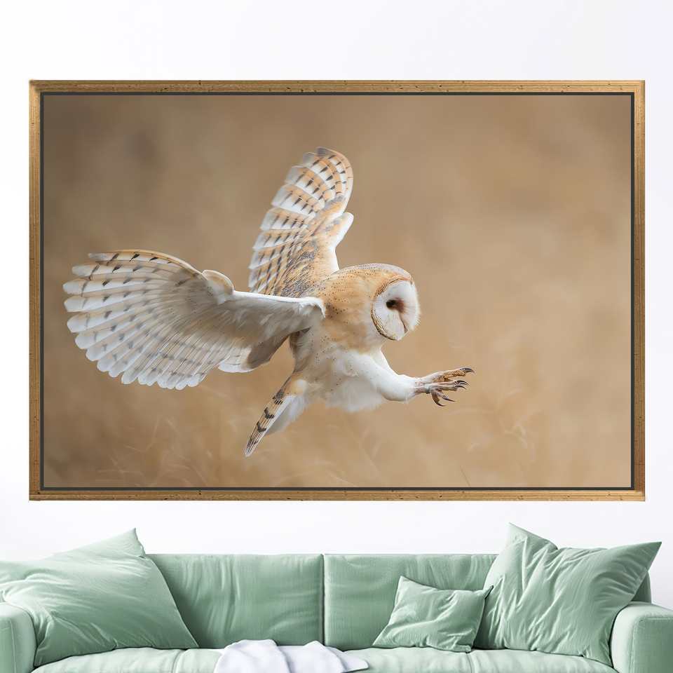 ผ้าใบพิมพ์ลายศิลปะนกฮูกบาร์นสุดหรู ตกแต่งบ้านด้วยภาพสัตว์ป่า 1 ชิ้น: กรอบสีทอง