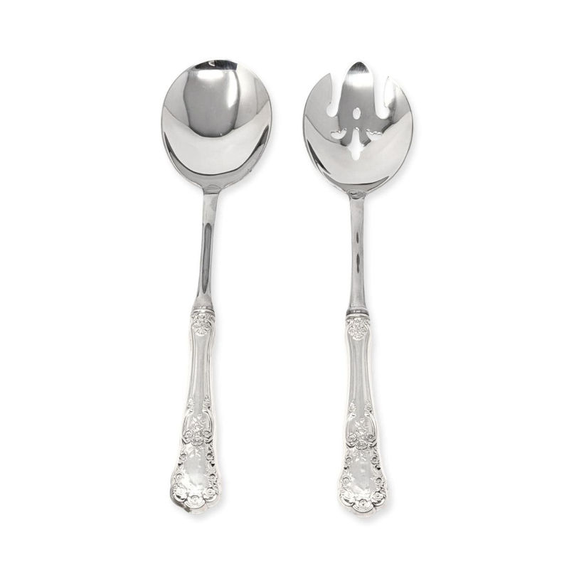 ชุดช้อนส้อมสลัดสไตล์บาโรกหรูหรา ชุบเงิน ด้ามจับประดับตกแต่งสวยงาม ทำจากสแตนเลส สำหรับเสิร์ฟในครัว