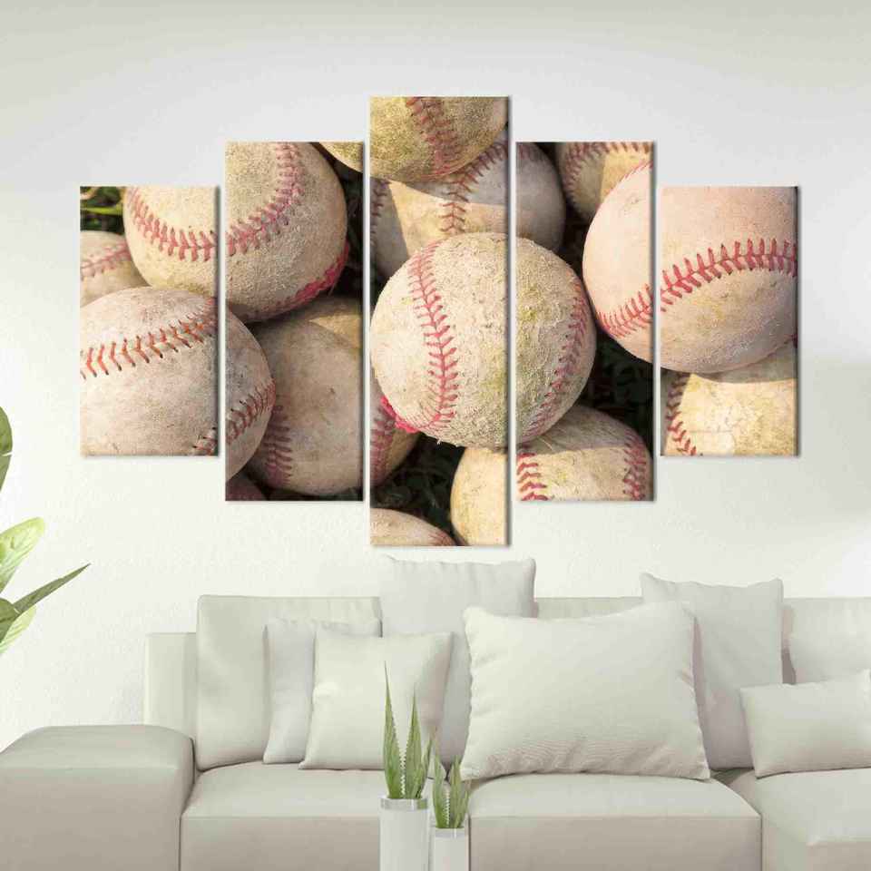 ภาพพิมพ์บนผ้าใบลายเบสบอลสุดหรูสำหรับตกแต่งห้องเด็กผู้ชาย ชุด 5 ชิ้น: ภาพพิมพ์แบบห่อหุ้ม