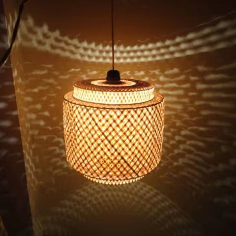 โคมไฟแขวนทำจากไม้ไผ่สานสำหรับตกแต่งห้องนั่งเล่นหรูหรา