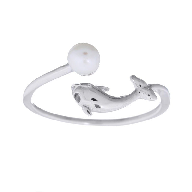 แหวนรูปโลมาดีไซน์หรูหราสไตล์ชายหาด ประดับมุกน้ำจืด เงินแท้ 925 สำหรับงานแต่งงานและวันครบรอบ
