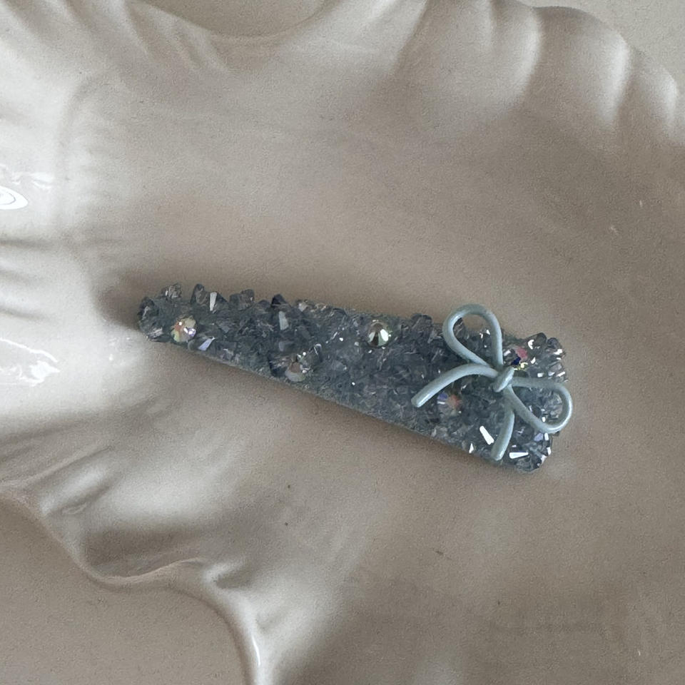 กิ๊บติดผมรูปโบว์คริสตัลสีน้ำเงินหรูหราประดับลูกปัดแบบหรูหราสำหรับผู้หญิง
