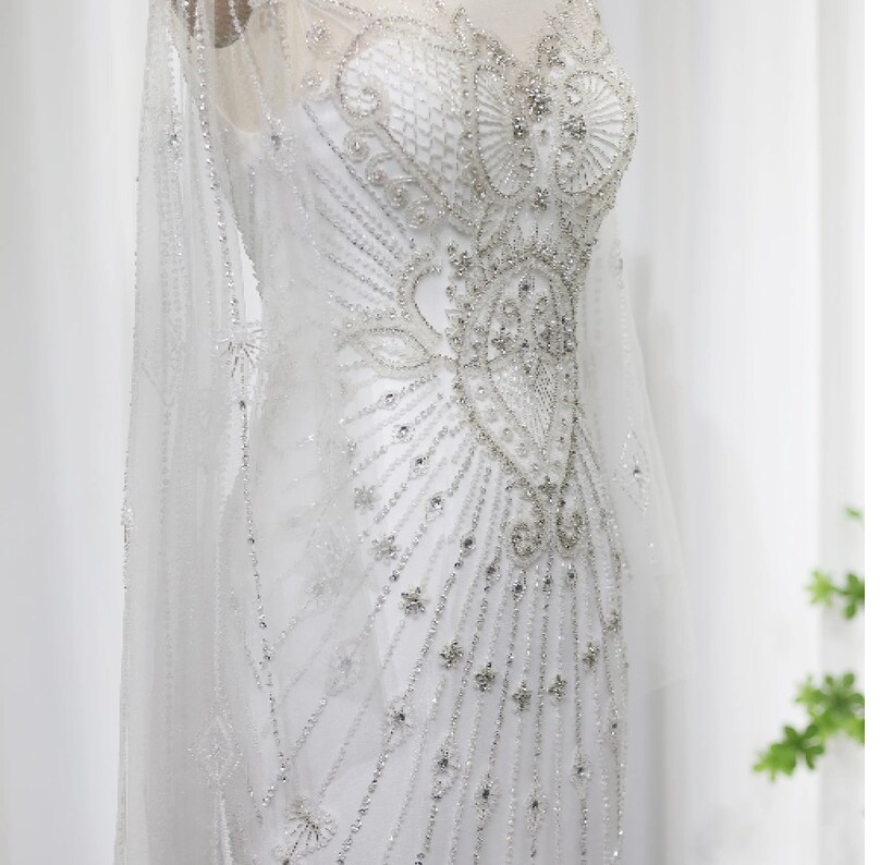ชุดเดรสคอวีลึกประดับด้วยไข่มุกลูกปัดที่สง่างามชุดเดรสคลับยาวถึงพื้นเอวตามธรรมชาติชุดชั้นในแบบเย็บปักในตัว