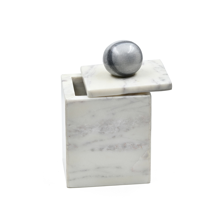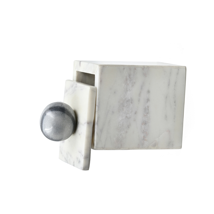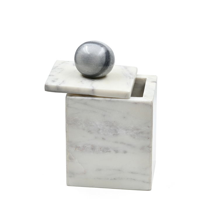 กล่องเก็บเกลือหินอ่อนสีขาวพร้อมฝาปิดภาชนะเก็บเครื่องเทศสำหรับห้องเก็บเกลือในบ้าน