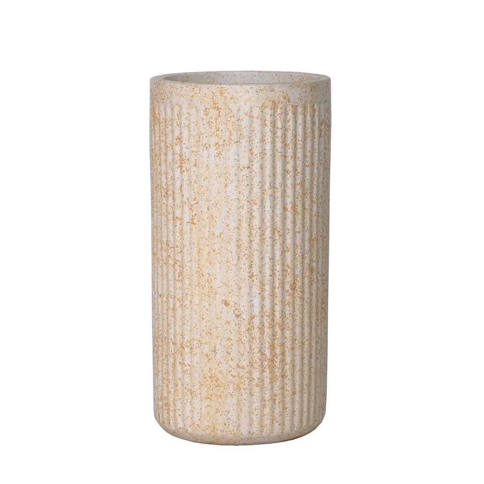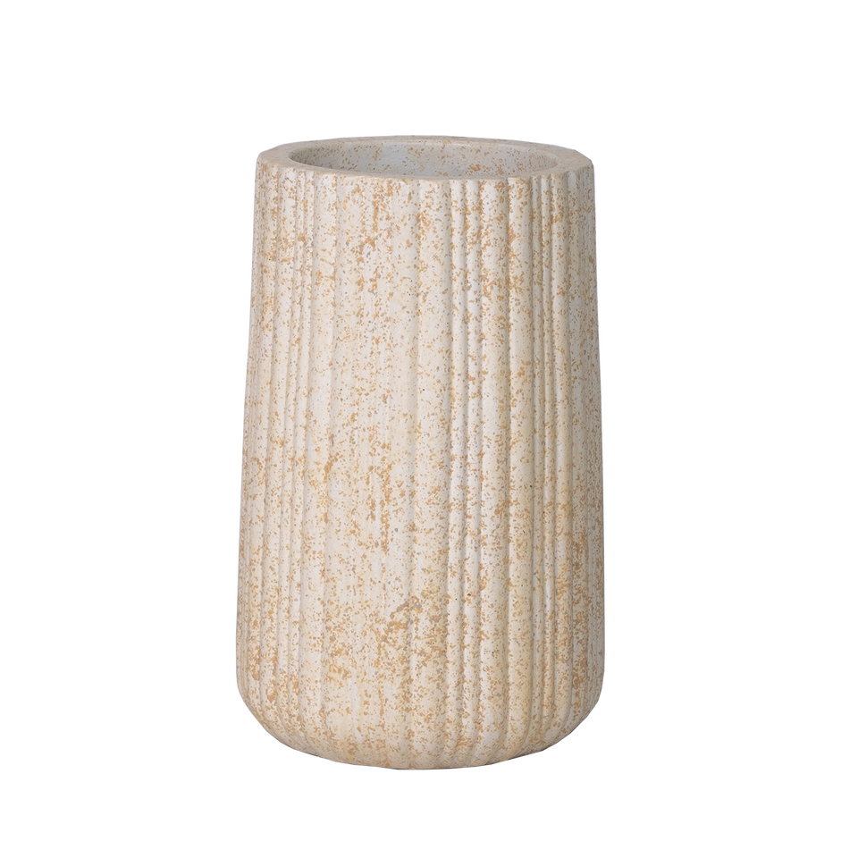 กระถางปูนซีเมนต์สีเบจหรูหรา พร้อมร่องแนวตั้งและลักษณะเหมือนหินธรรมชาติ