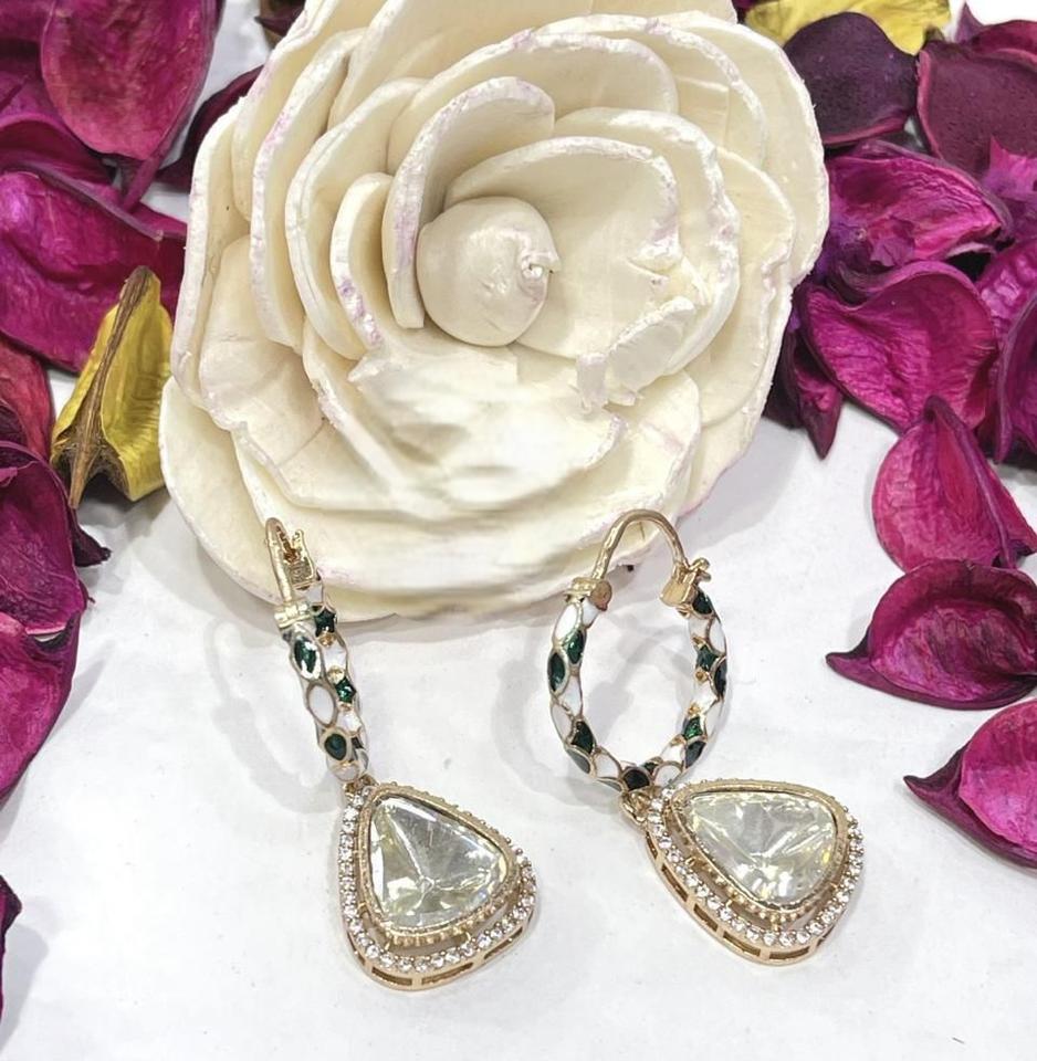 Elegant Best Quality Gold Finish Statement Traditional Wear Stones Look Earrings Wedding Wear Collections For Women And Girls