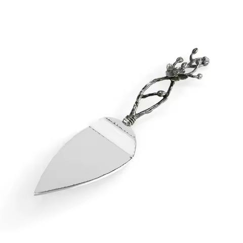 Elegant Black Metal Cake Server Artisan Floral Design Handle for Dining and Entertaining Unique Gift Item