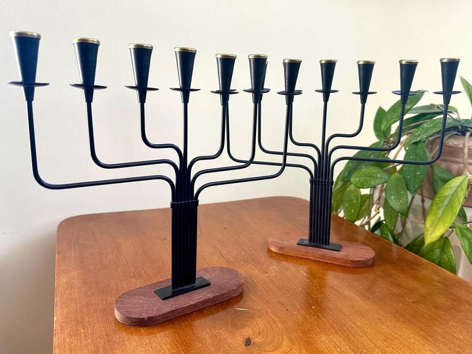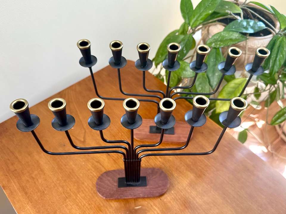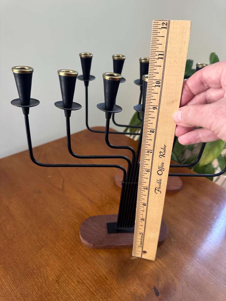 เชิงเทียนโลหะสีดำดีไซน์หรูหราพร้อมฐานไม้ เหมาะสำหรับตกแต่งห้องนั่งเล่นและเป็นของประดับตกแต่งกลางโต๊ะ จากอินเดีย