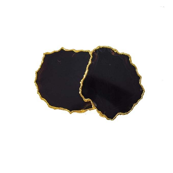 ชุดจานรองแก้วอะเกตแกะสลักสีดำสุดหรู - ของตกแต่งบ้านสุดหรูแบบสั่งทำพิเศษด้วยแผ่นหินกึ่งมีค่าธรรมชาติ