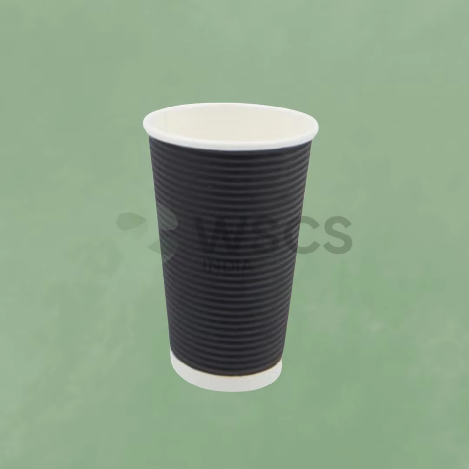 ถ้วยกระดาษผนังสองชั้นลายริ้วสีดำหรูหราเป็นมิตรกับสิ่งแวดล้อมเหมาะสำหรับบรรจุภัณฑ์เครื่องดื่มร้อนและเย็นกลับบ้านอินเดีย