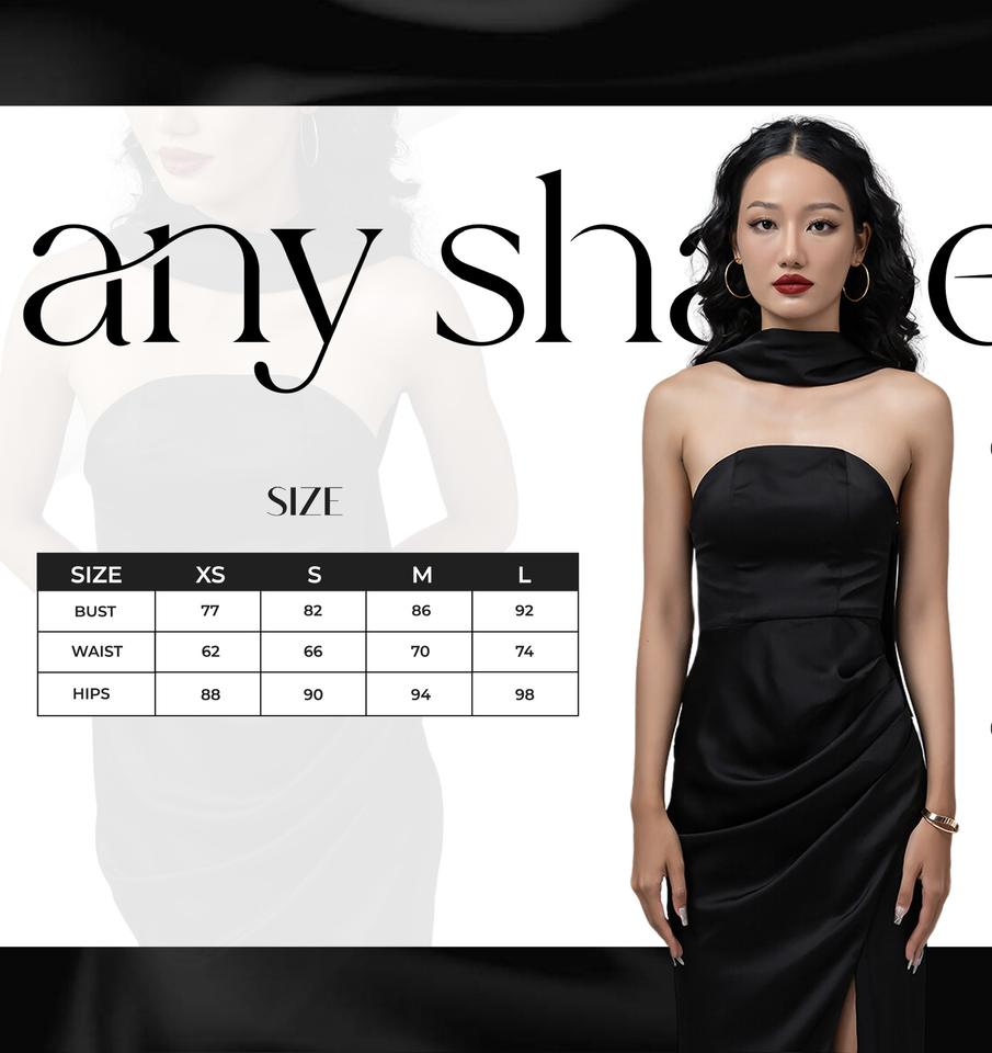 เทคนิค:ชุดเดรสบอดี้คอนผ้าซาตินพร้อมด้วยการแต่งตัวรวบรวมและมีแผ่นรองในตัว
