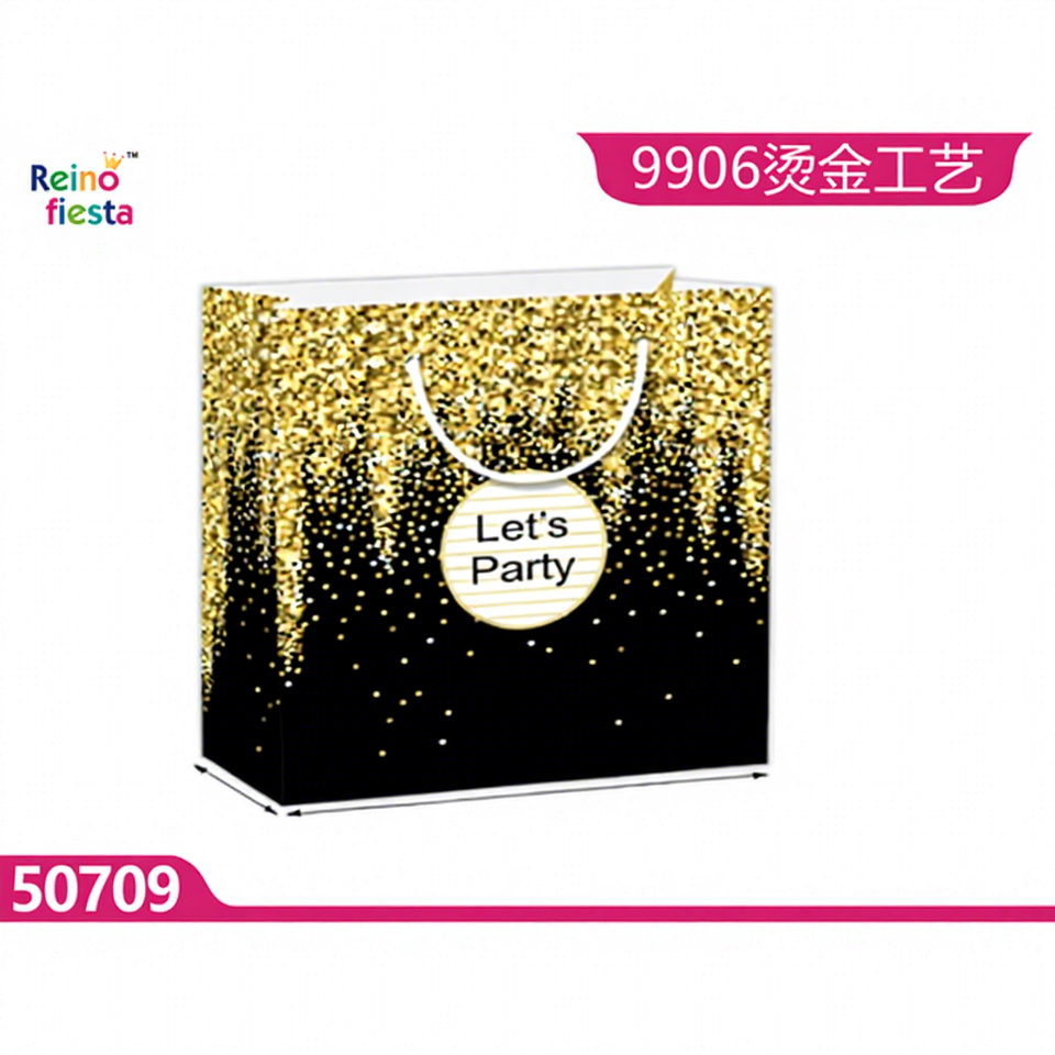 ถุงของขวัญงานเลี้ยงสีดำลายทองหรูหรา สำหรับงานเฉลิมฉลองและกิจกรรมต่างๆ อุปกรณ์จัดงานปาร์ตี้สีทอง รุ่น Peiyong 50709