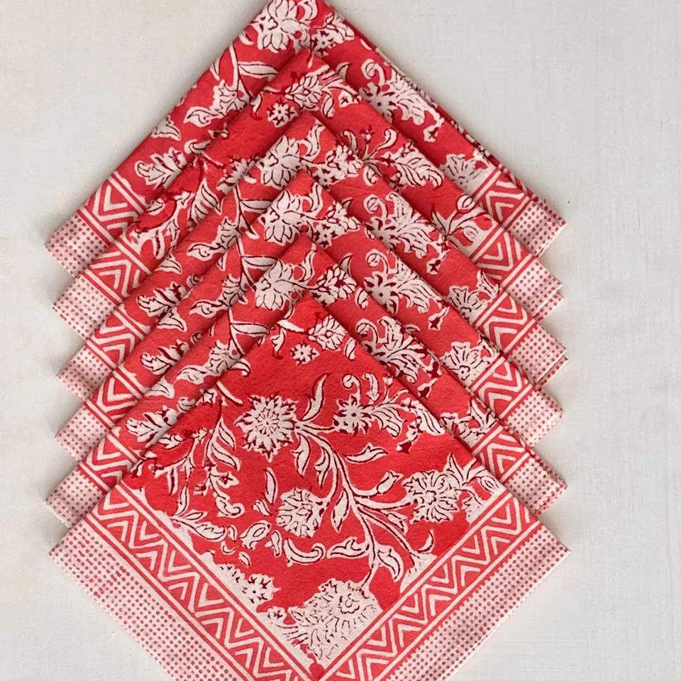 ผ้าเช็ดปากผ้าฝ้ายพิมพ์ลายดอกไม้ใช้ซ้ำได้เป็นมิตรต่อสิ่งแวดล้อมใช้ซ้ำได้บนโต๊ะอาหารสำหรับงานแต่งงานผ้าเช็ดปากบนโต๊ะขนาดพิเศษ
