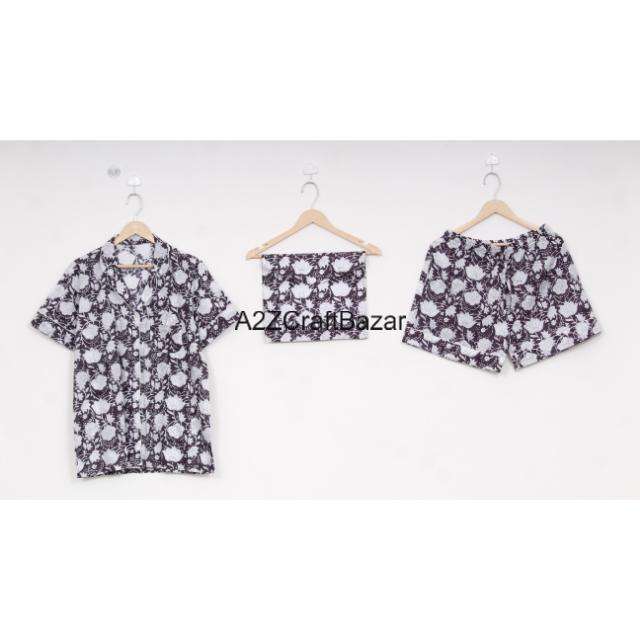 ชุดนอนผ้าฝ้ายแท้ 100% ลายดอกไม้พิมพ์บล็อก ดีไซน์หรูหรา แขนสั้น คอวี สำหรับผู้หญิง พร้อมเชือกผูกแบบนุ่ม