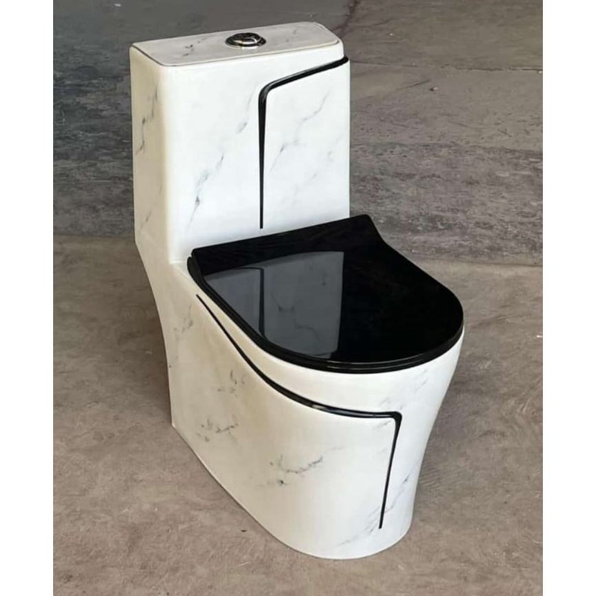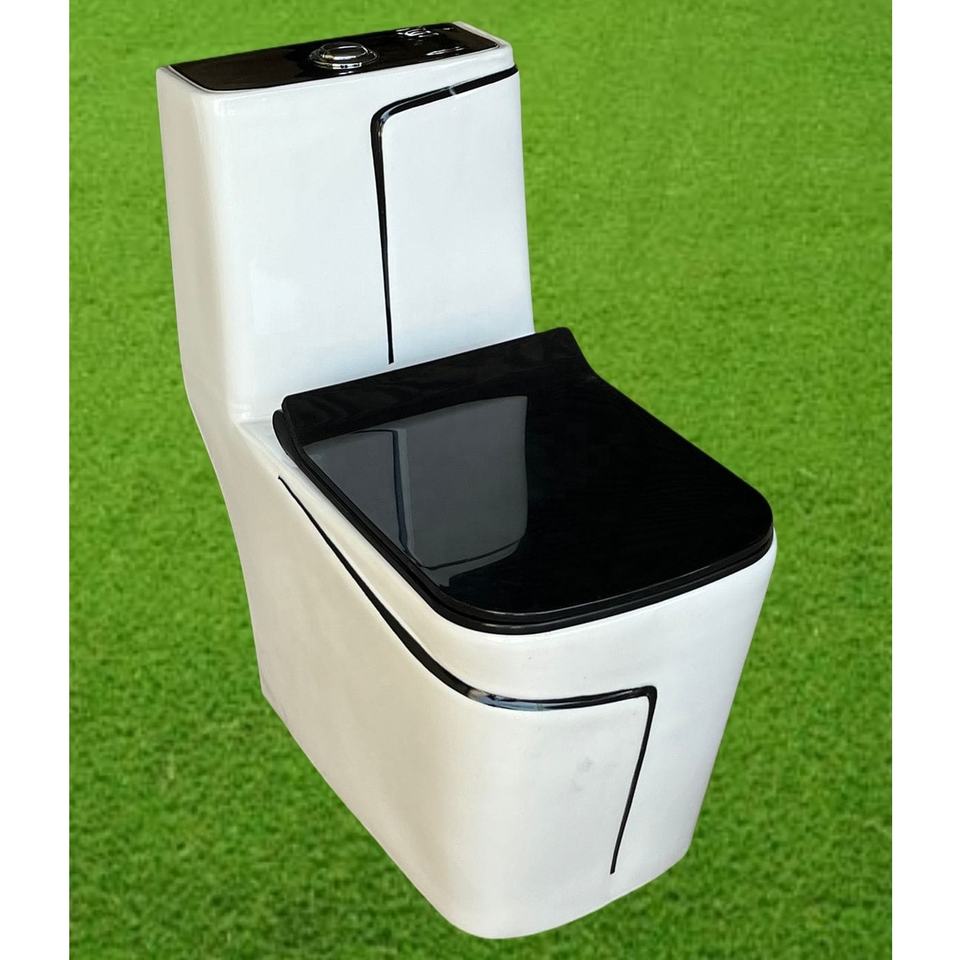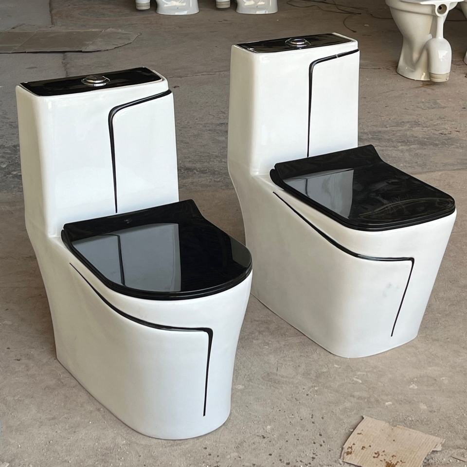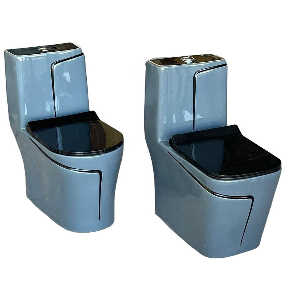 โถสุขภัณฑ์เซรามิกสีน้ำเงินหรูหราพร้อมเส้นสีดำ - สุขภัณฑ์ห้องน้ำสุดหรูสำหรับผู้นำเข้าขายส่งชาวแอฟริกัน