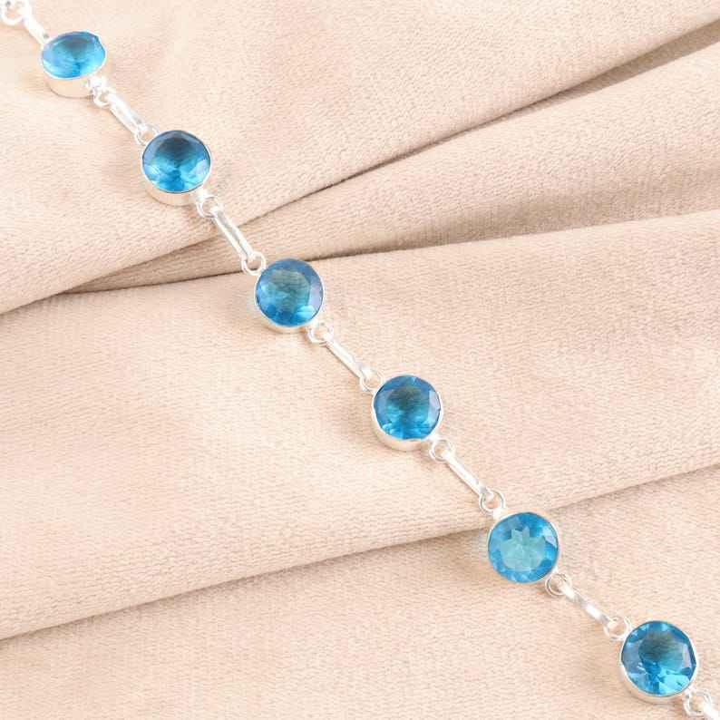 สร้อยข้อมือพลอยบุษราคัมสีฟ้าหรูหรา925เงินสเตอร์ลิงปรับได้โซ่โบฮีเมียนสำหรับงานแต่งงานของขวัญพิเศษ