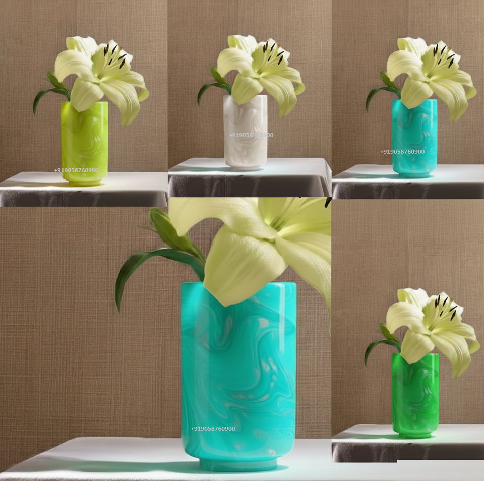 แจกันทรงกระบอกทำจากเรซินสีฟ้าสีขาวสีเขียวเหลืองตกแต่งโต๊ะสำหรับคริสต์มาสบ้านและสำนักงาน