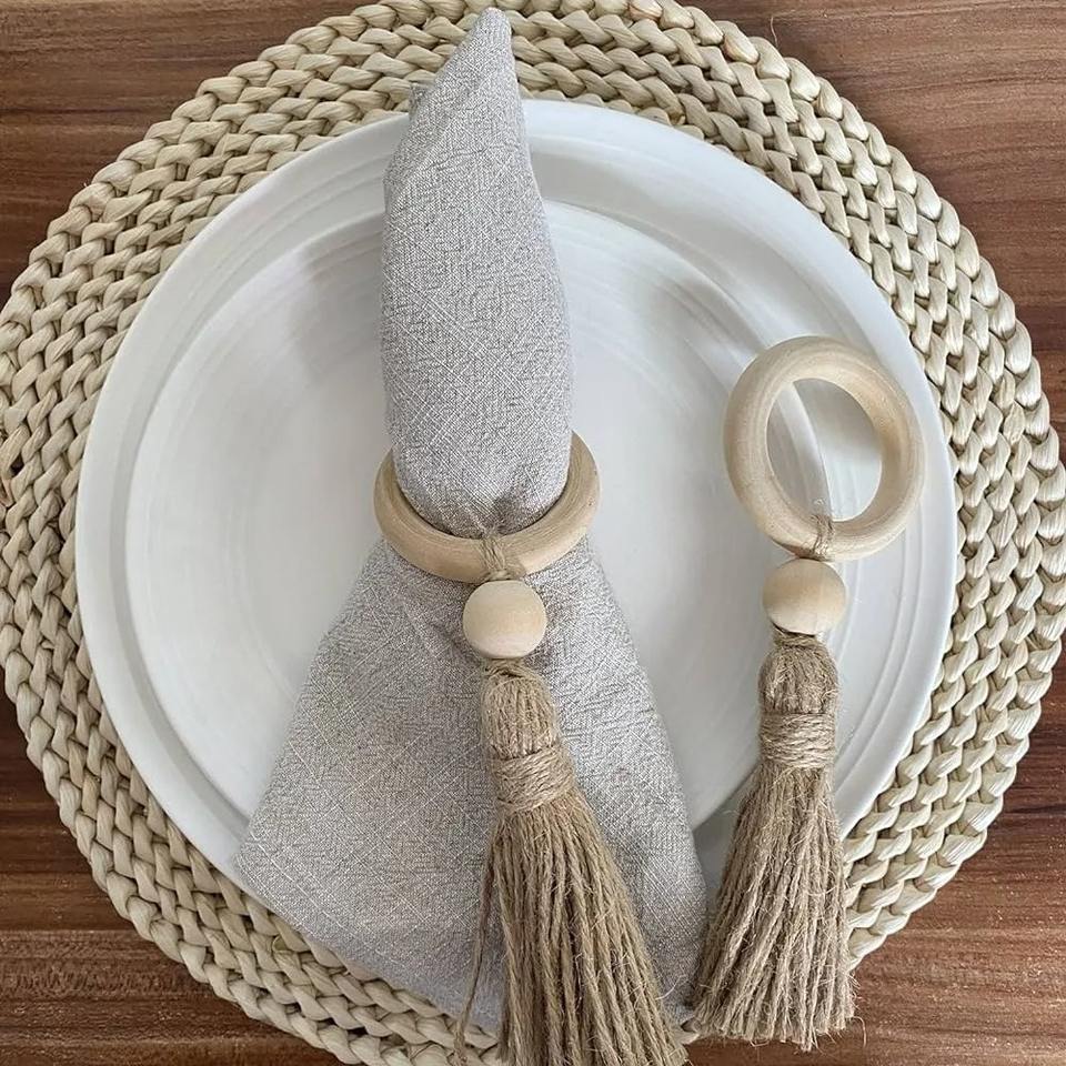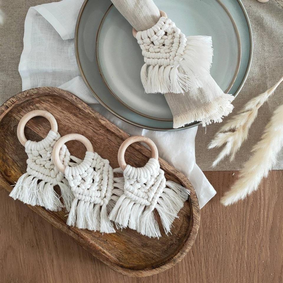 ที่ใส่ผ้าเช็ดปากสไตล์โบฮีเมียนผ้าคอตต้อนถักมือสำหรับตกแต่งโต๊ะรับประทานอาหารห้องครัวหรือตกแต่งภายในบ้าน