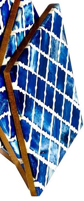 แผ่นรองแก้วไม้ไผ่ฝังลายกระดูกอย่างมีสไตล์ เป็นมิตรกับสิ่งแวดล้อม ทนความร้อน รูปทรงสี่เหลี่ยม ผลิตในอินเดีย ดีไซน์ไม่ซ้ำใคร มีจำหน่ายทั่วโลก