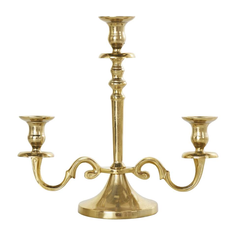 "เชิงเทียนทองเหลือง3แขนดีไซน์คลาสสิกเหมาะสำหรับตกแต่งบ้านหรือโอกาสพิเศษเช่นงานแต่งงาน"