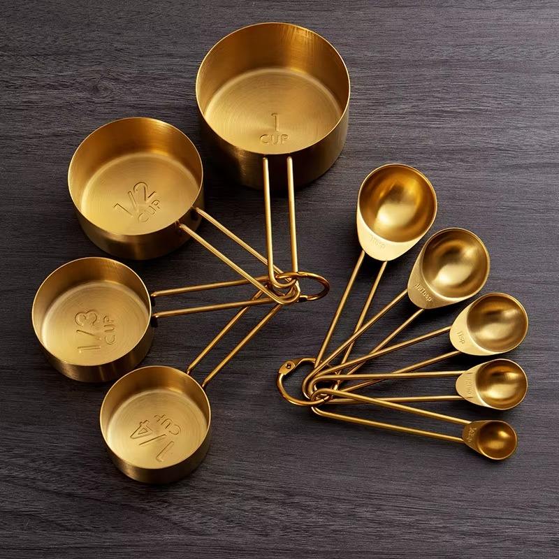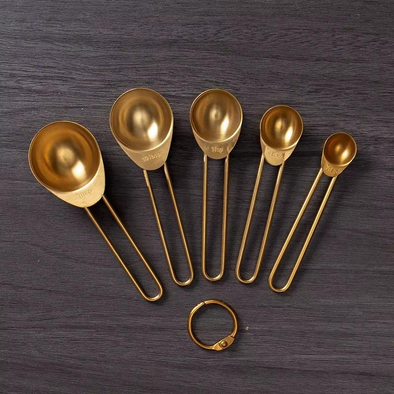 ชุดช้อนตวงทองเหลืองสุดหรู8ชิ้นพร้อมที่จับที่มีสไตล์คุณภาพระดับพรีเมี่ยมทรงกลมเหมาะสำหรับการอบอาหารอย่างมีสไตล์