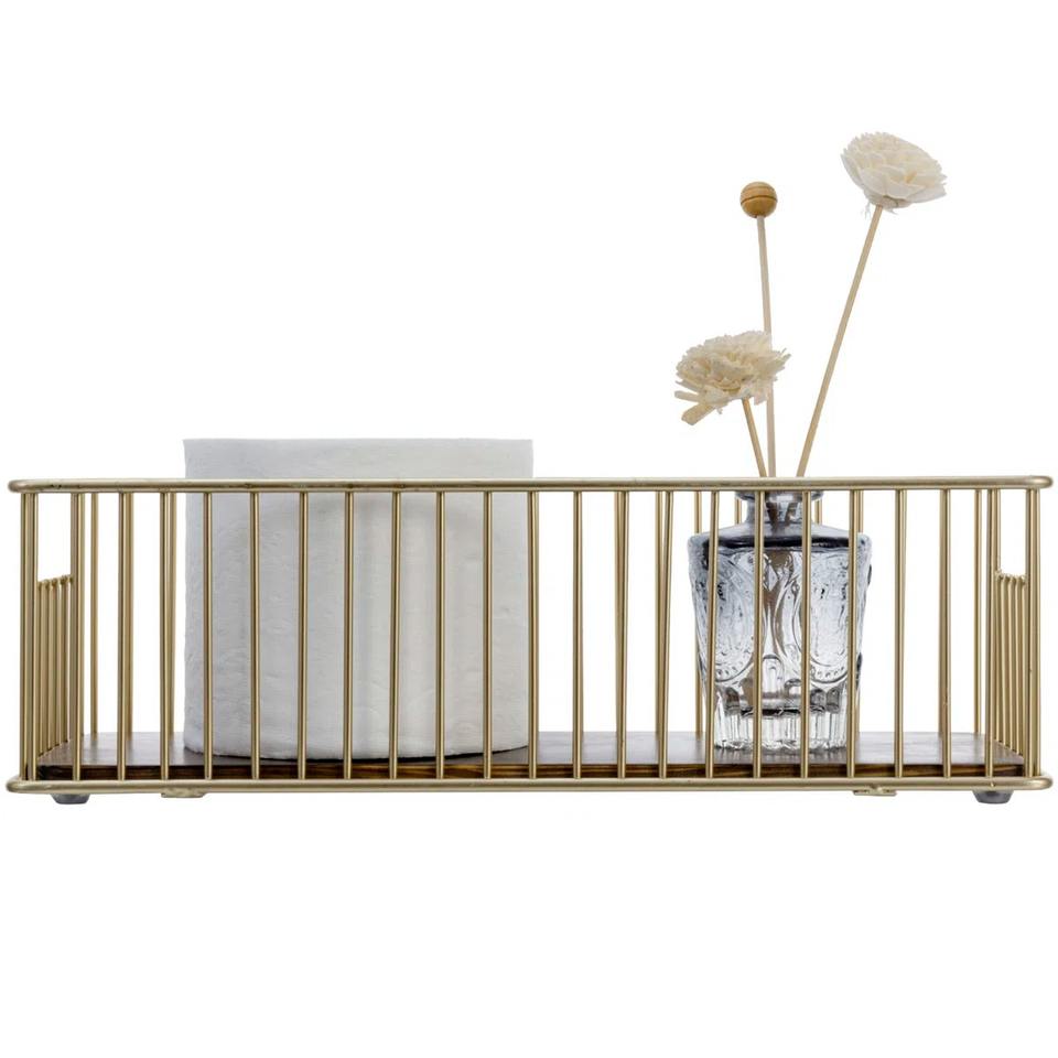 Elegant Modern Luxury Stainless Steel Vanity Tray Solid Wooden Bottom for Guest Towels Bathroom Accessories Beverage Living Room
