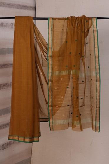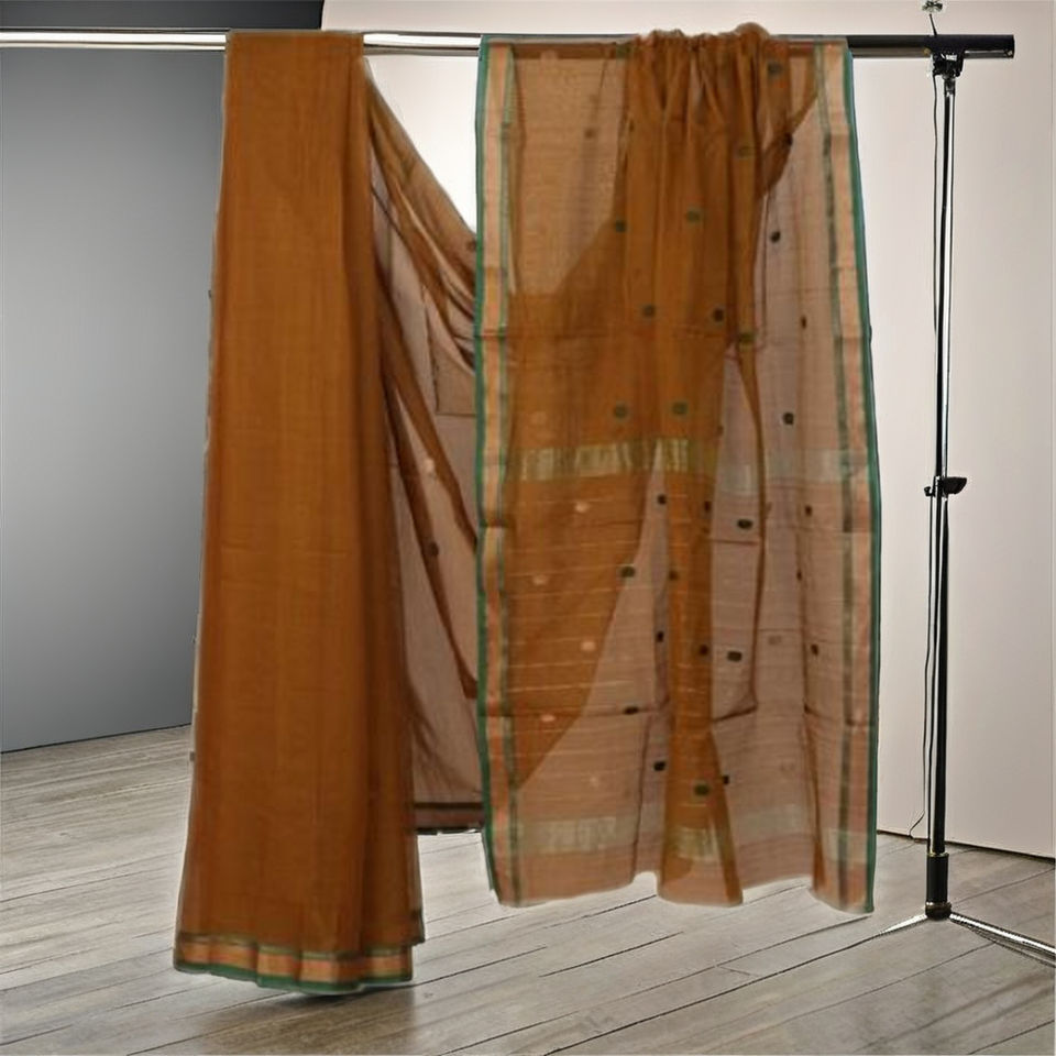 ผ้าส่าหรีผ้าฝ้ายผสมไหมสีน้ำตาลสวยหรูพร้อมขอบตัดสี | ชุดประจำชาติอินเดียแบบดั้งเดิม | งานรื่นเริง | งานแต่งงาน | ผู้ออกแบบชุดส่าหรีสำหรับงานปาร์ตี้