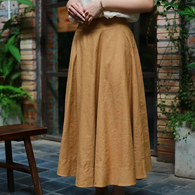 กระโปรงแมกซี่ผ้าเรยอนสีน้ำตาลหรูหราสำหรับผู้หญิงเอวสูงกระโปรงยาวลำลองมีกระเป๋าเอวสูงย้อมธรรมดา