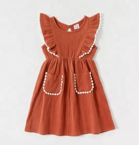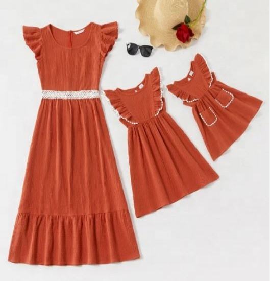 เดรสผ้าฝ้ายสีน้ำตาลเนื้อนุ่มดูหรูหราทรงหลวมและใส่สบายสำหรับคุณแม่และฉันเดรสยาวคลุมเข่าพร้อมที่คาดผมติดกระดุมด้านหน้าและแขนระบายขนาดเล็ก