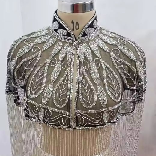 เดรสทรงตรงสไตล์เบอร์เลสก์ประดับด้วยไข่มุกและบราในตัวชุดสำหรับงานรื่นเริงคลับประดับด้วยลูกปัดปักเลื่อม