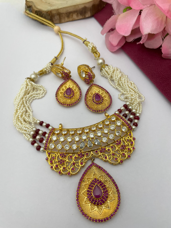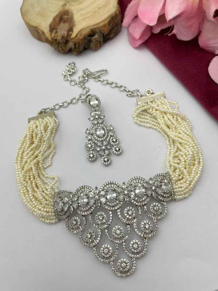ชุดสร้อยคอ CZ Choker Mala สำหรับผู้หญิงที่สมบูรณ์แบบสำหรับงานแต่งงานปาร์ตี้และชุดอินเดียแบบดั้งเดิมชุดออกแบบล่าสุด