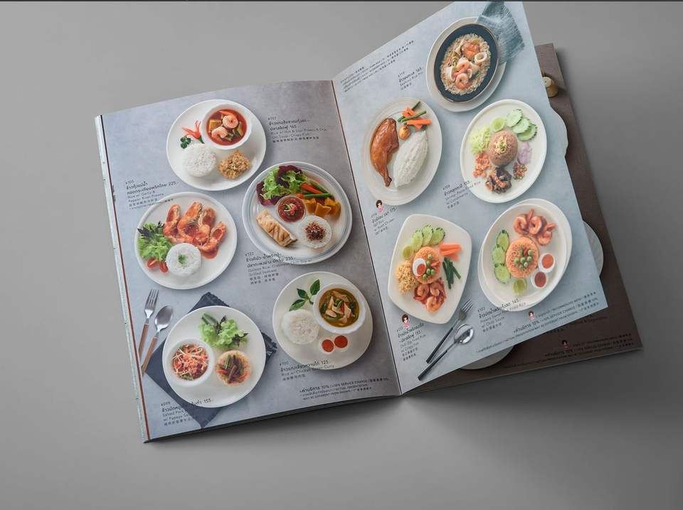 กระดาษเคลือบโลโก้ตามสั่งพิมพ์ลาย CMYK เมนูร้านอาหารคาเฟ่สุดหรูสำหรับเมนูหนังสือ/แผ่นพับ/โบรชัวร์