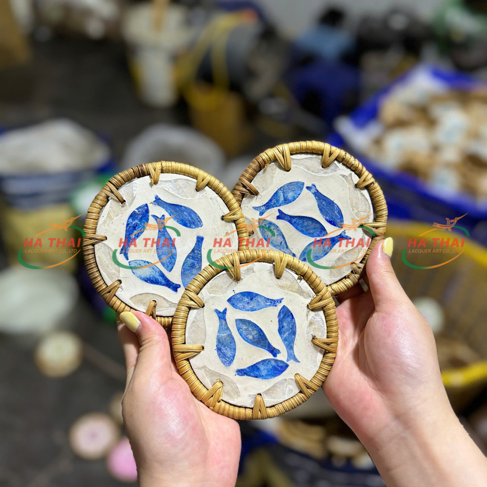 แผ่นรองแก้วลายดอกไม้ประดับเปลือกหอยคาปิซ งานฝีมือ ป้องกันโต๊ะอาหารอย่างมีสไตล์